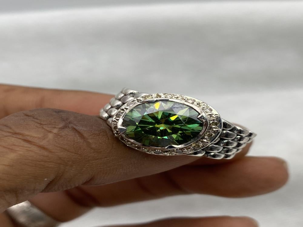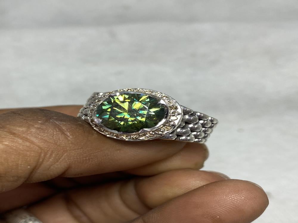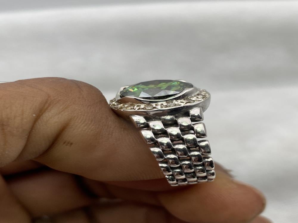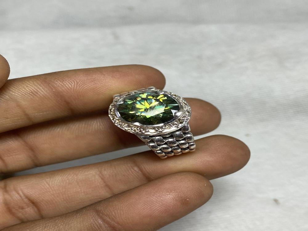 خاتم فضة بحجر الموزونايت صياغة حجت المرصعه بالألماس