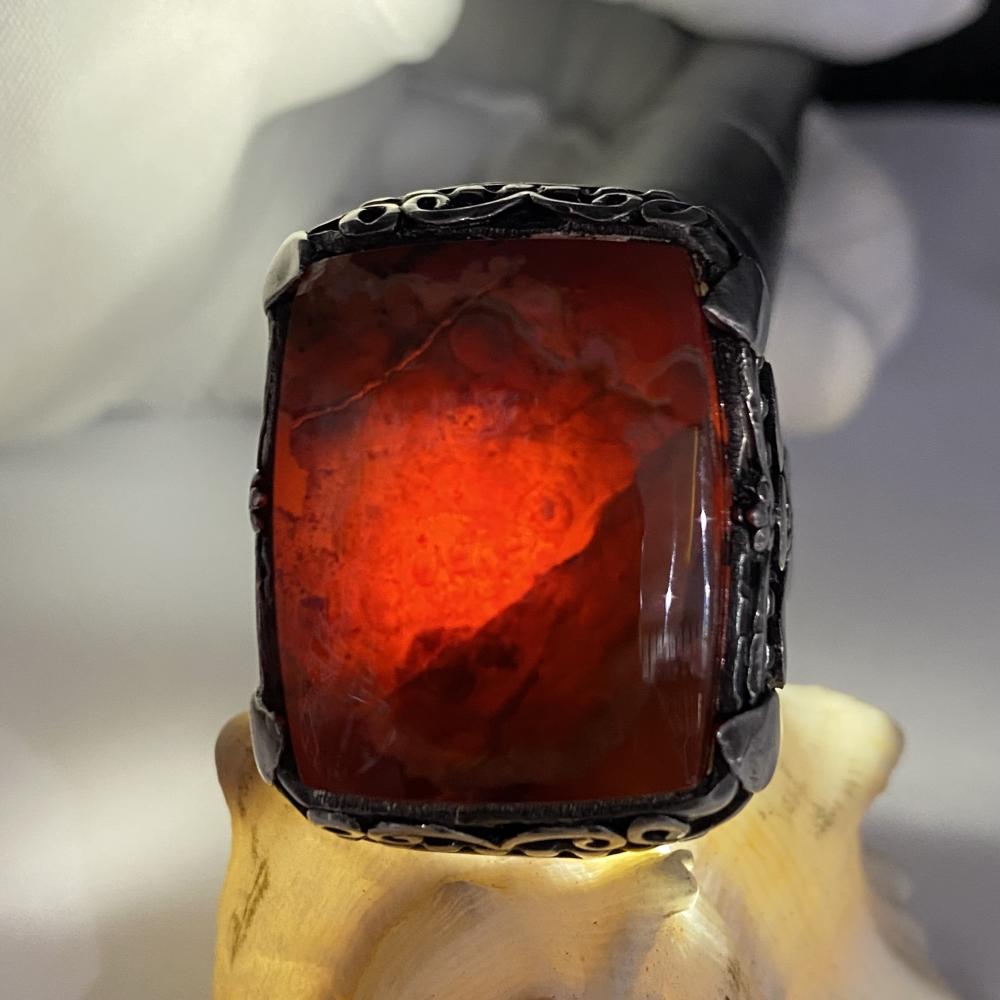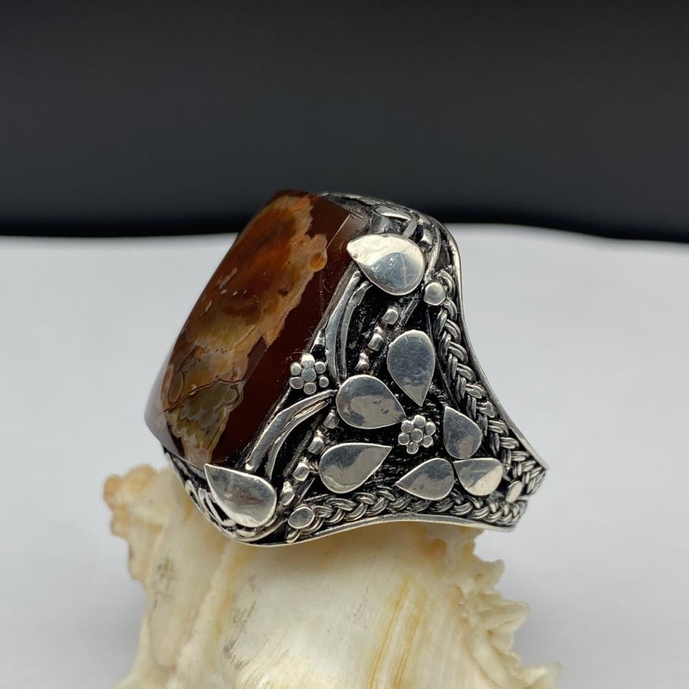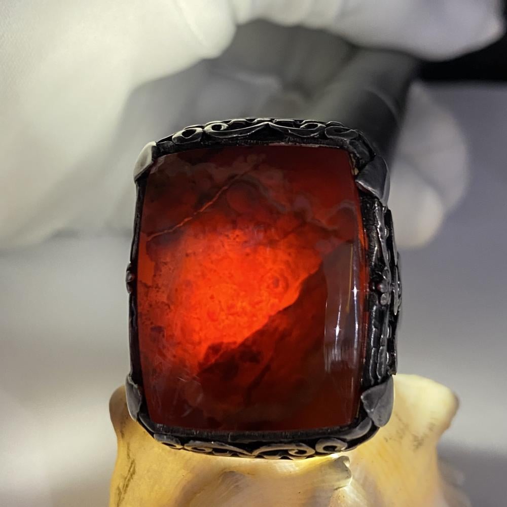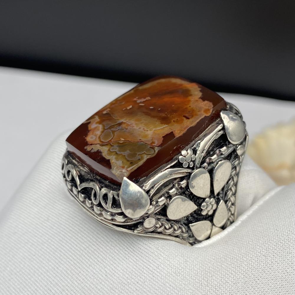 خاتم فضة بحجر العقيق اليماني المزعفر صياغة يمانيه مميزه (الرفاعي)