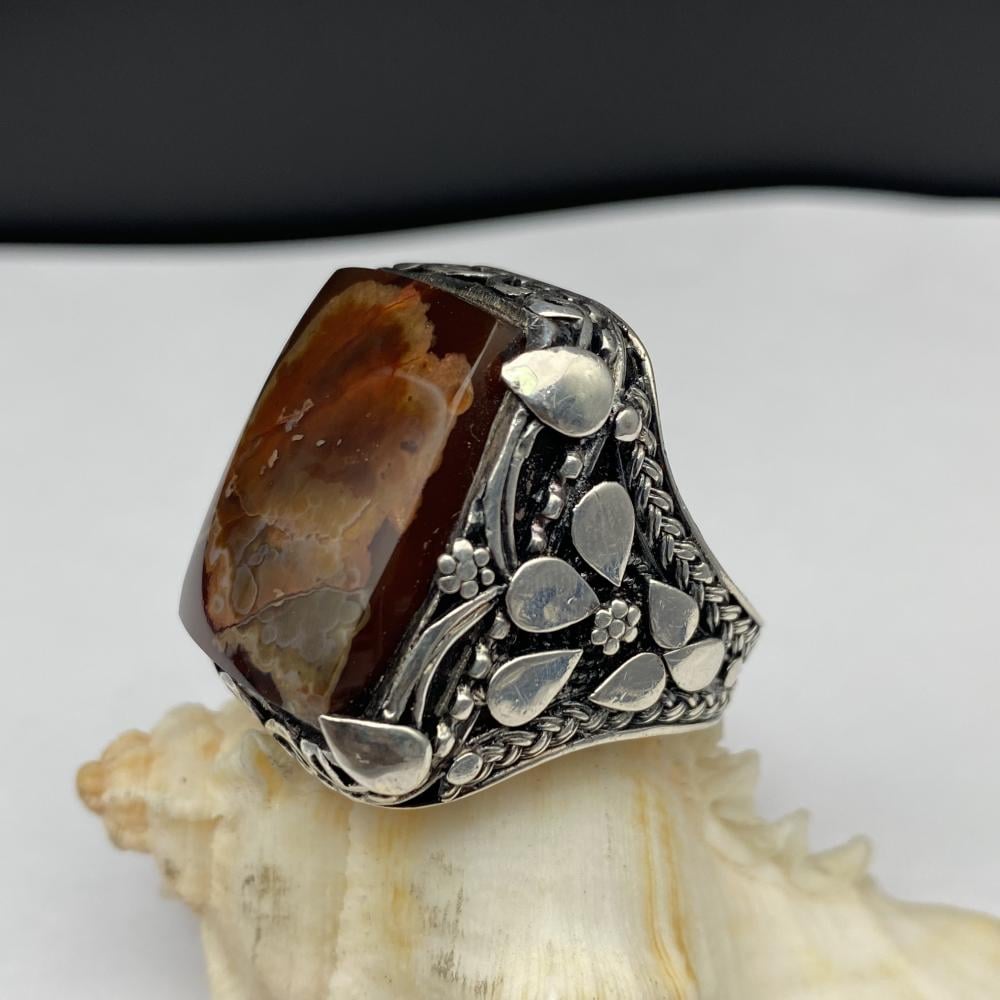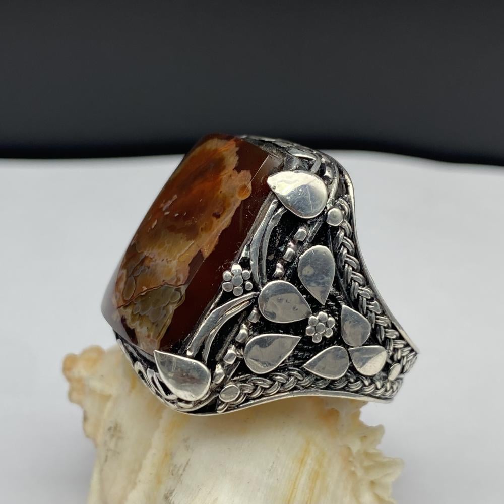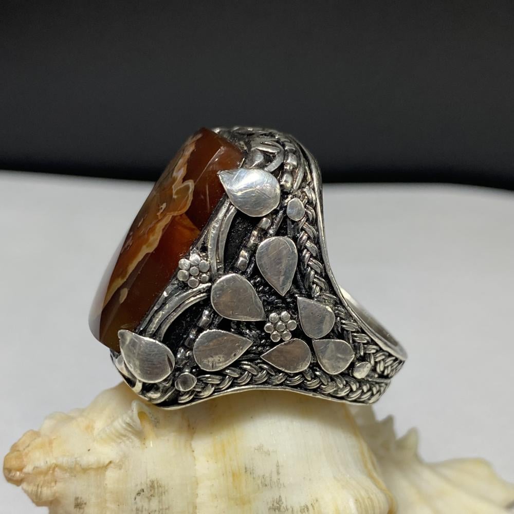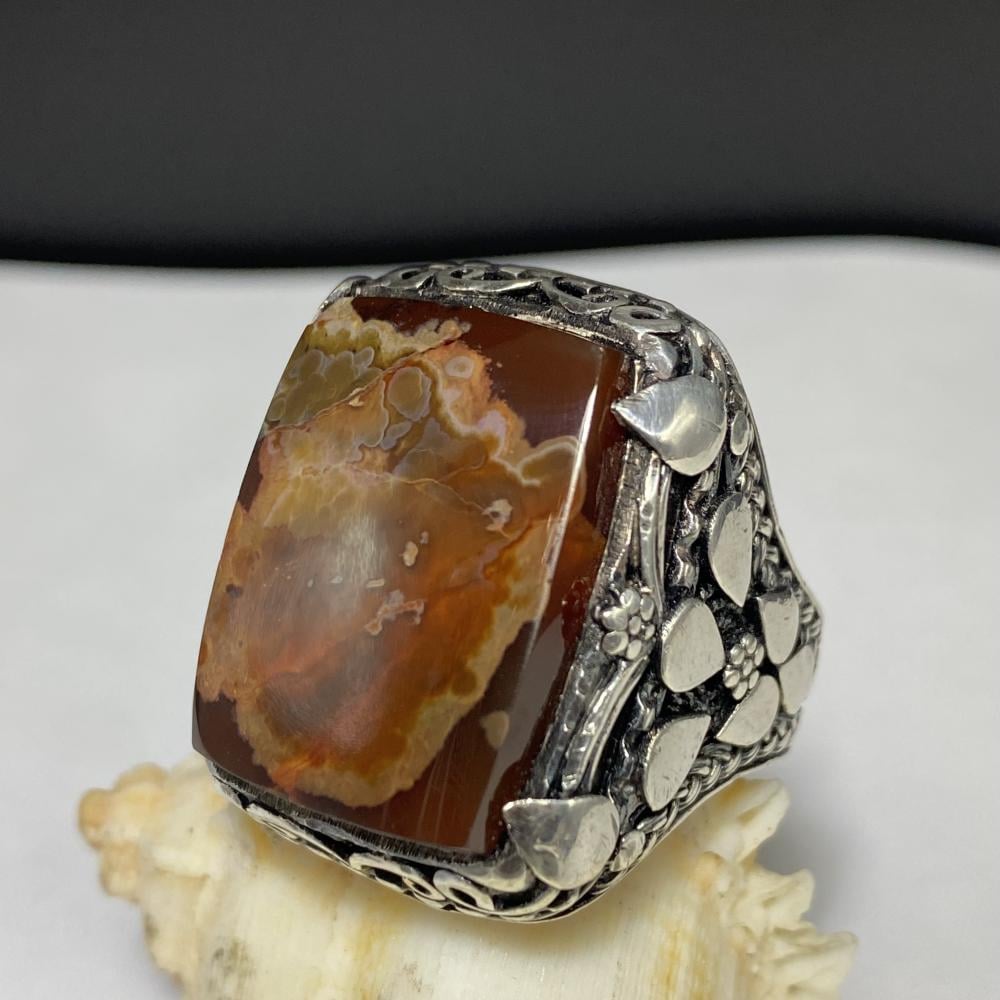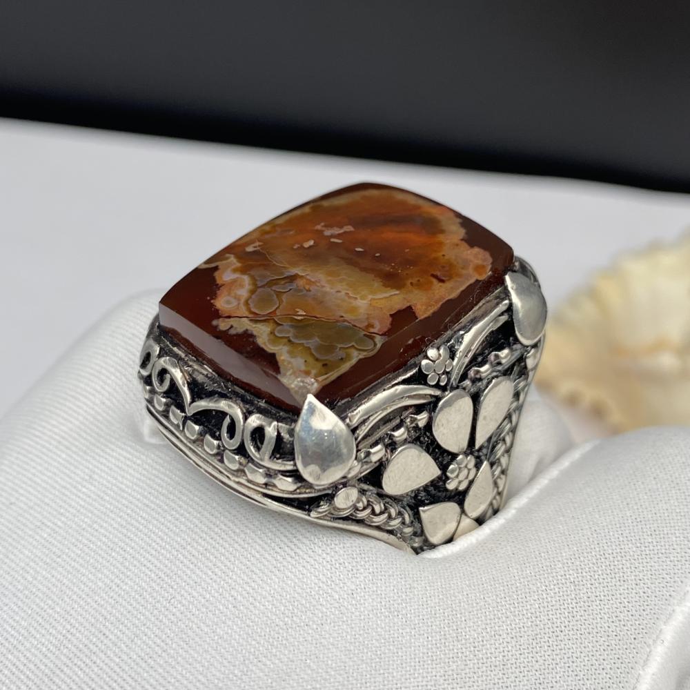 خاتم فضة بحجر العقيق اليماني المزعفر صياغة يمانيه مميزه (الرفاعي)