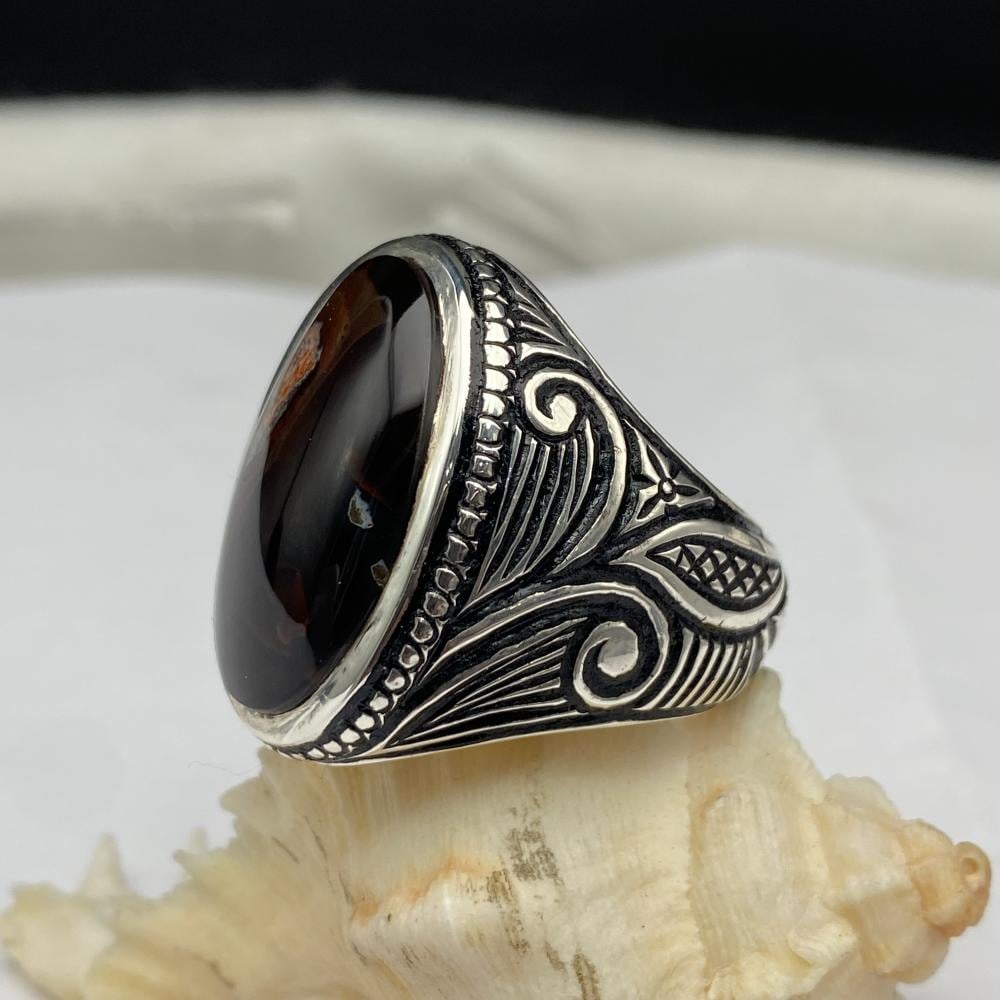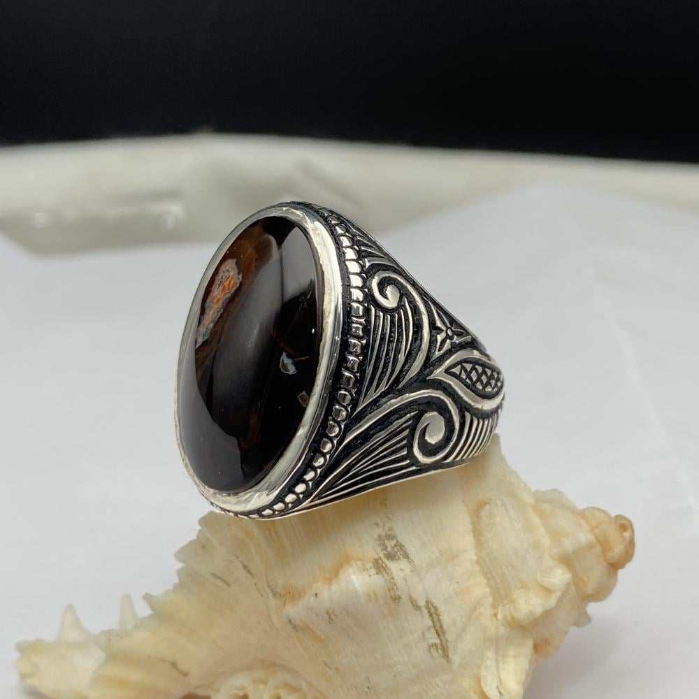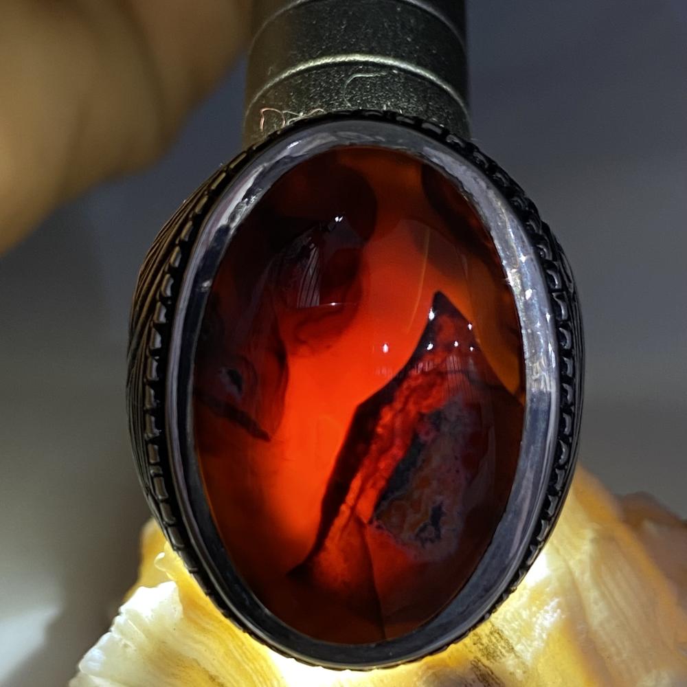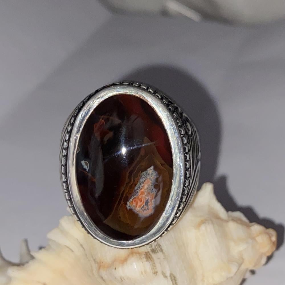 خاتم فضة بحجر العقيق اليماني الكرزي المزعفر صياغة يدويه برتاش الوليف بختم وإشراف الرفاعي
