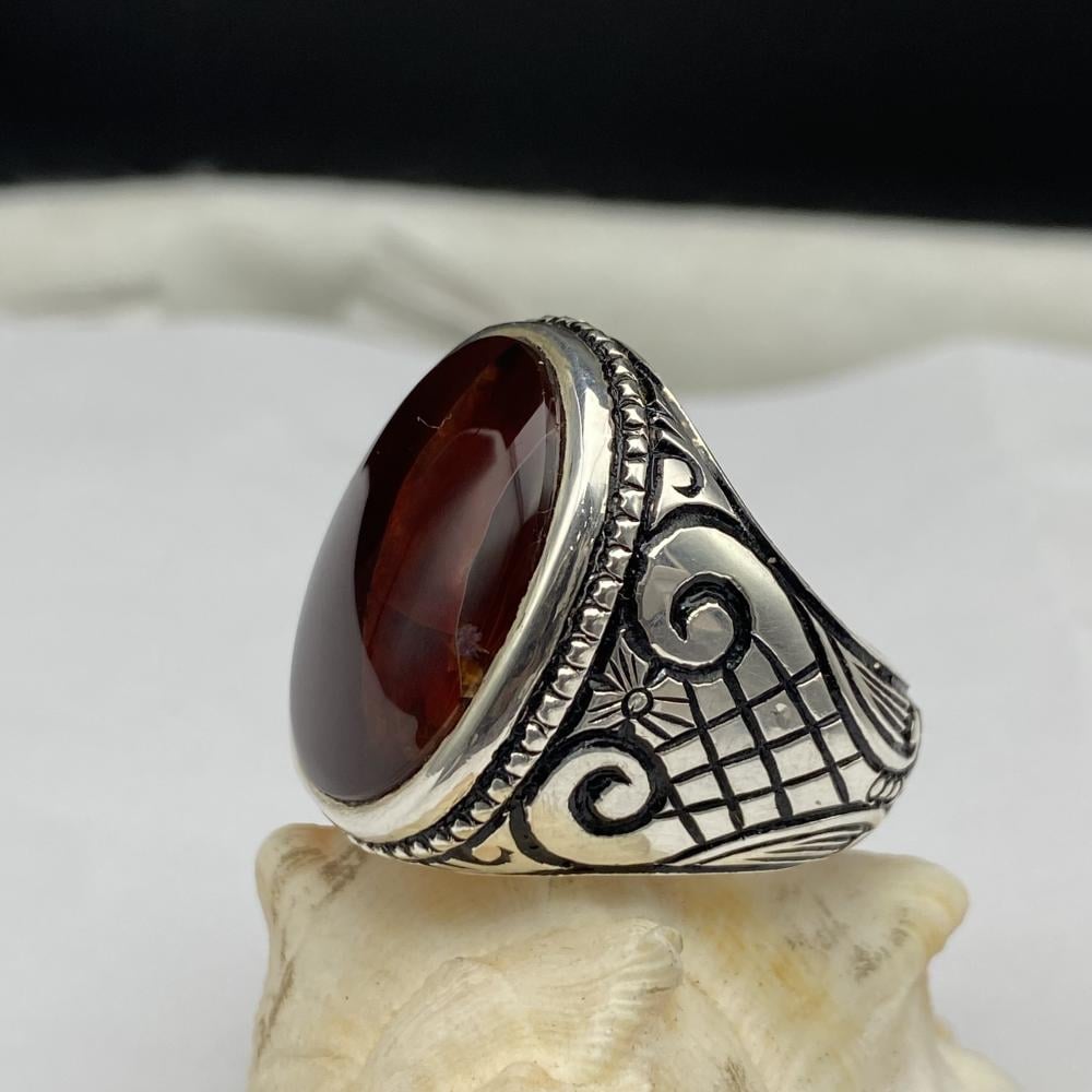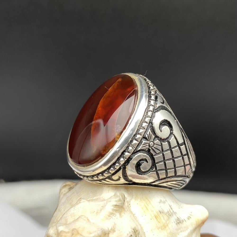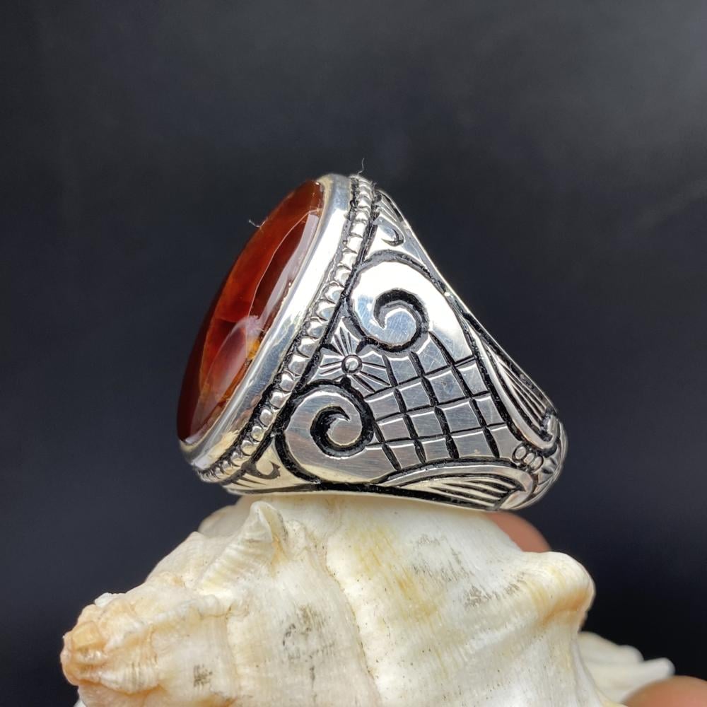 خاتم فضة بحجر العقيق اليماني كرزي مزعفر صياغة برتاش ورشه الوليف بختم .الرفاعي