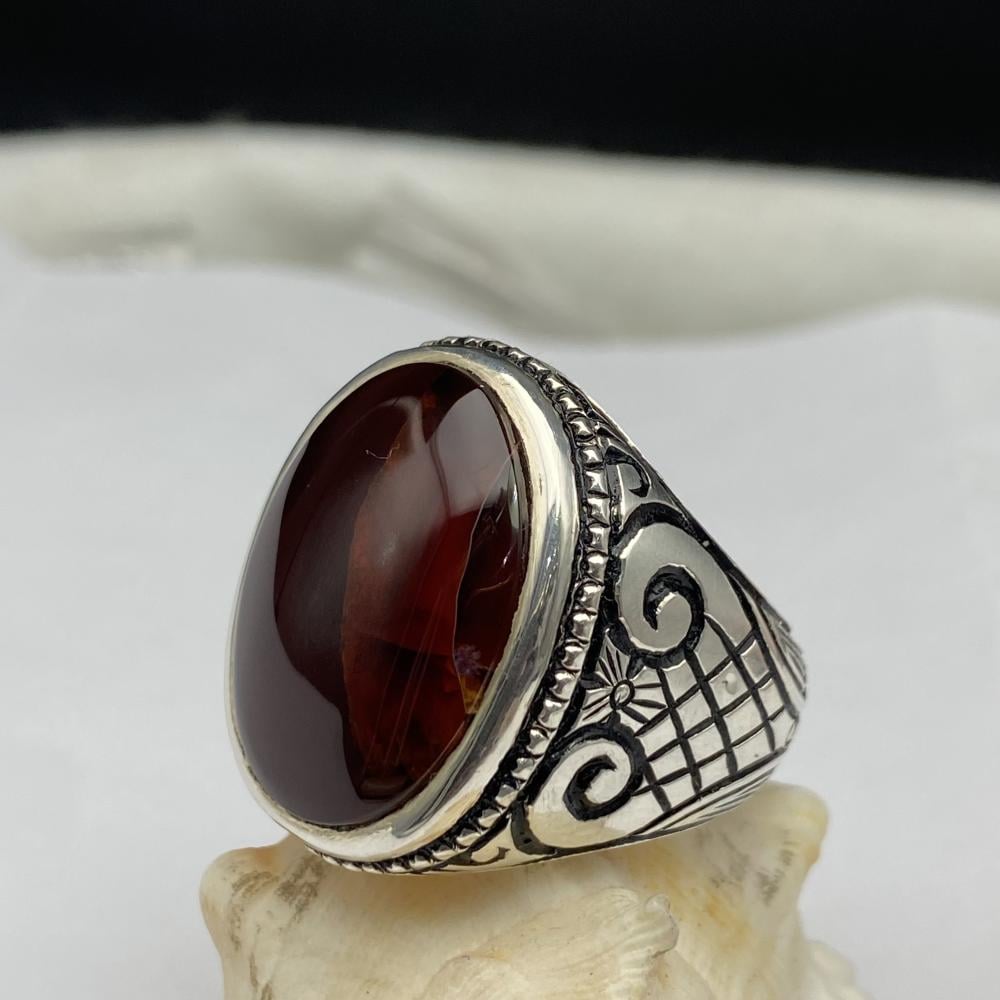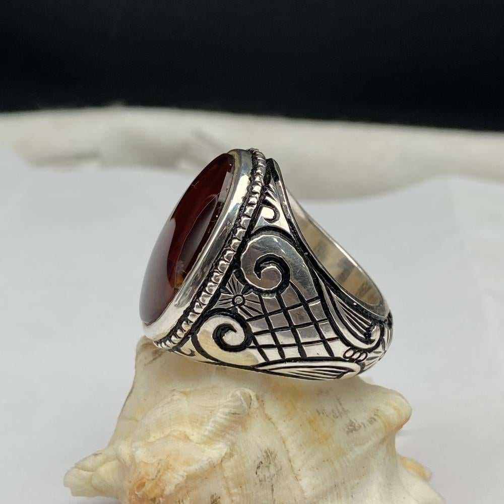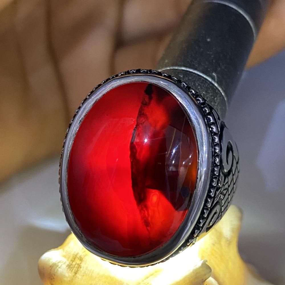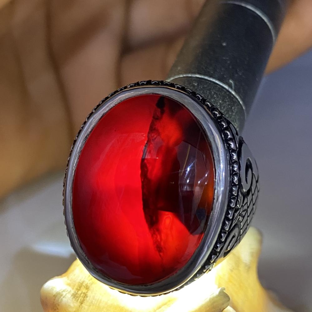 خاتم فضة بحجر العقيق اليماني كرزي مزعفر صياغة برتاش ورشه الوليف بختم .الرفاعي