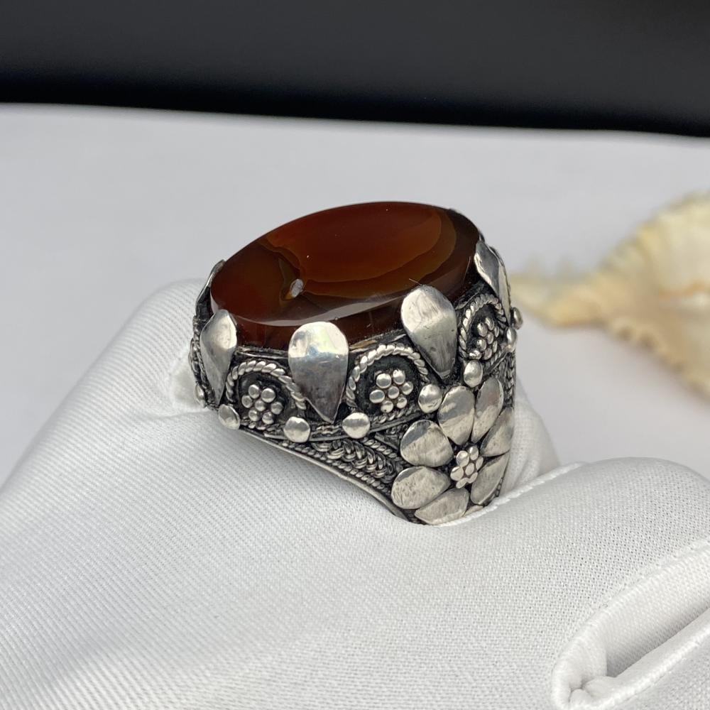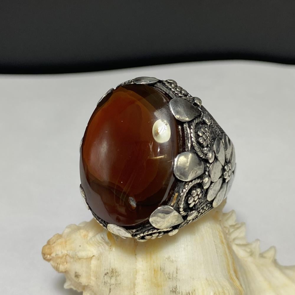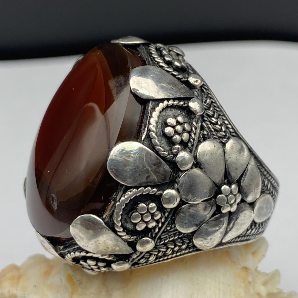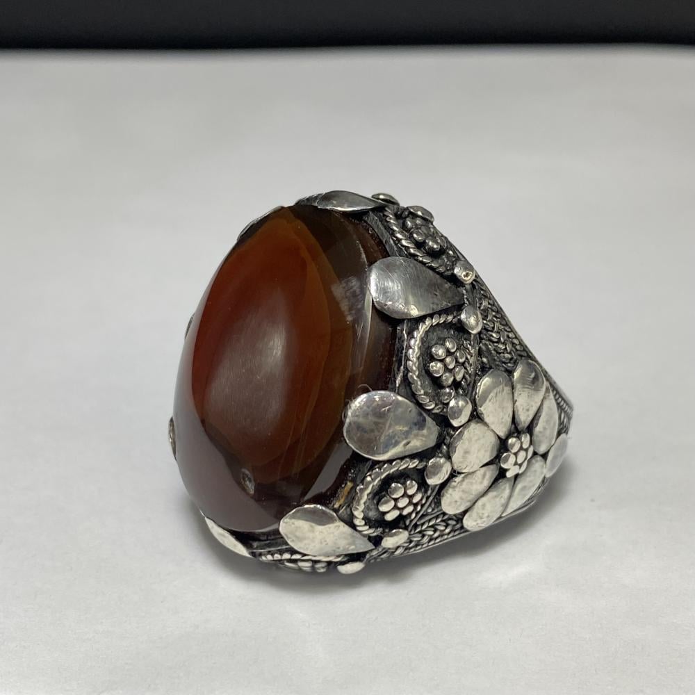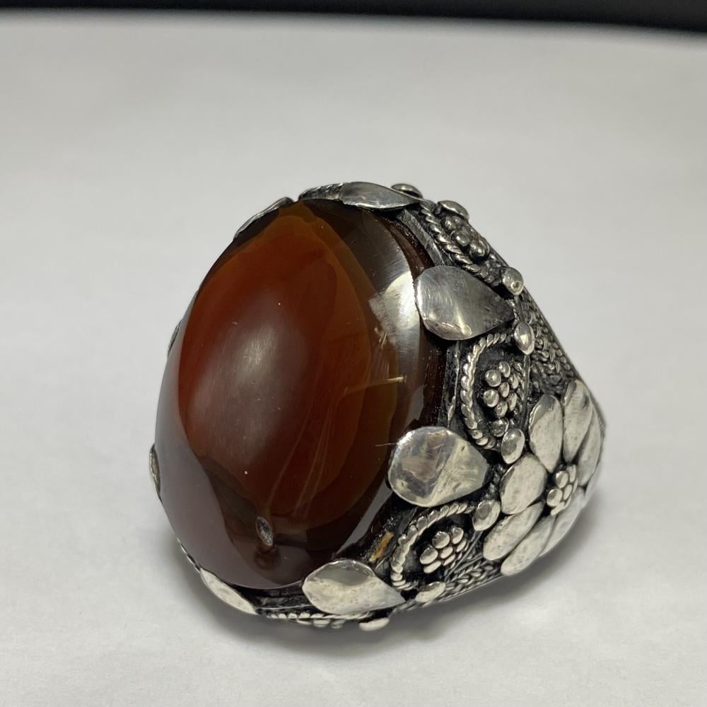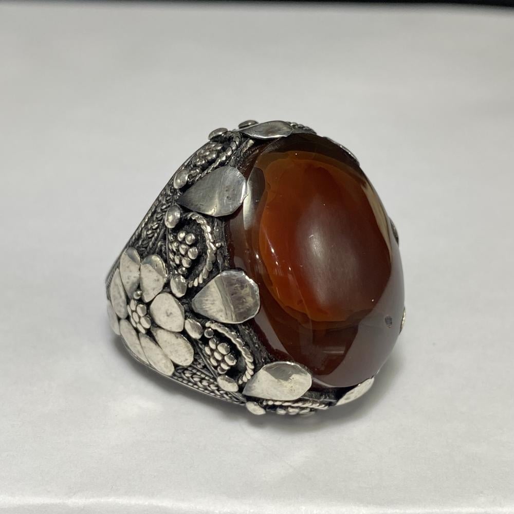 خاتم فضة بحجر العقيق اليماني المزعفر صياغة يمانيه الرفاعي