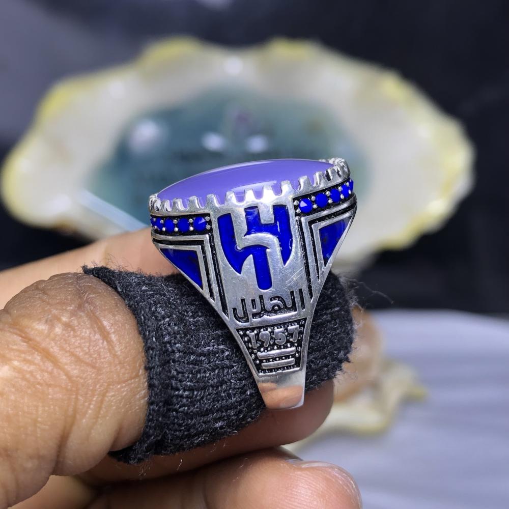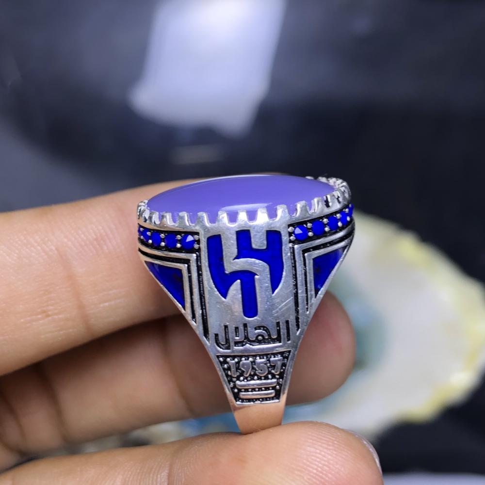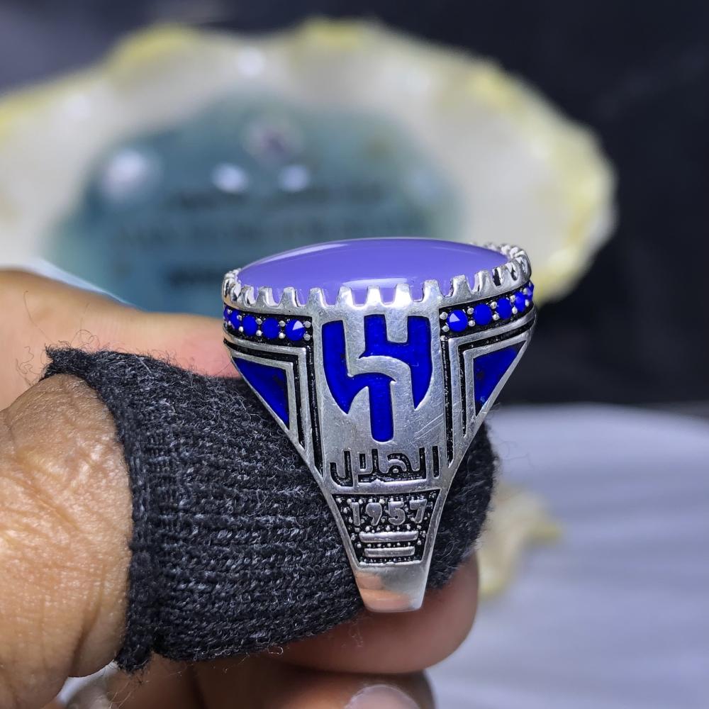 خاتم فضه بحجر العقيق اليماني صياغة منقوشه بشعار الهلال السعودي (الزعيم)