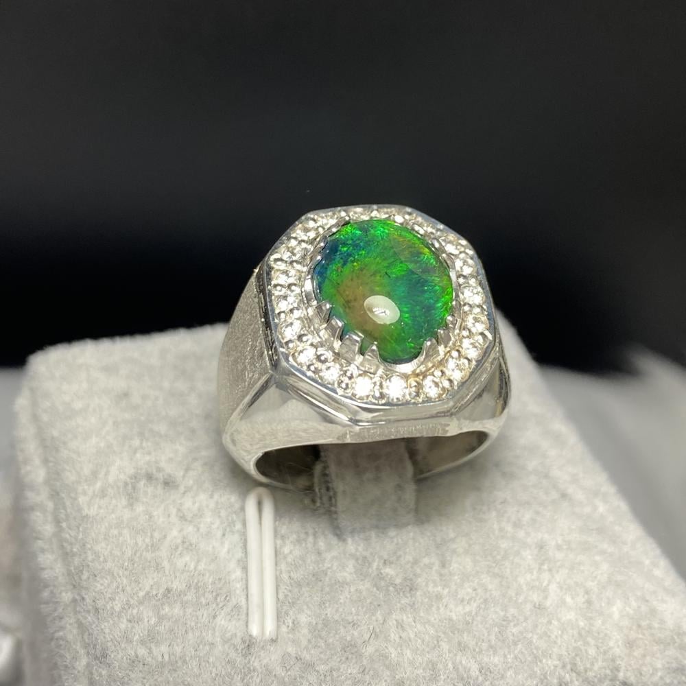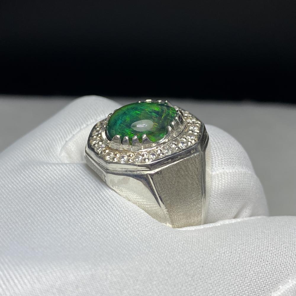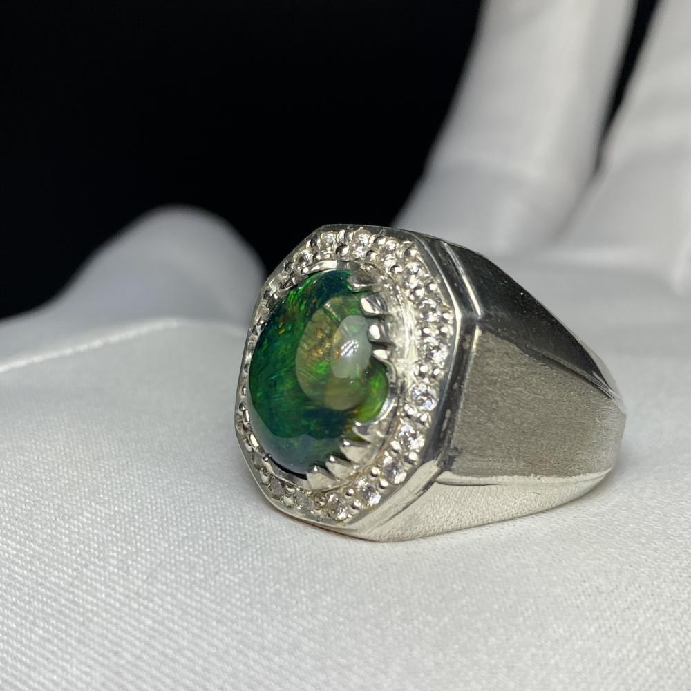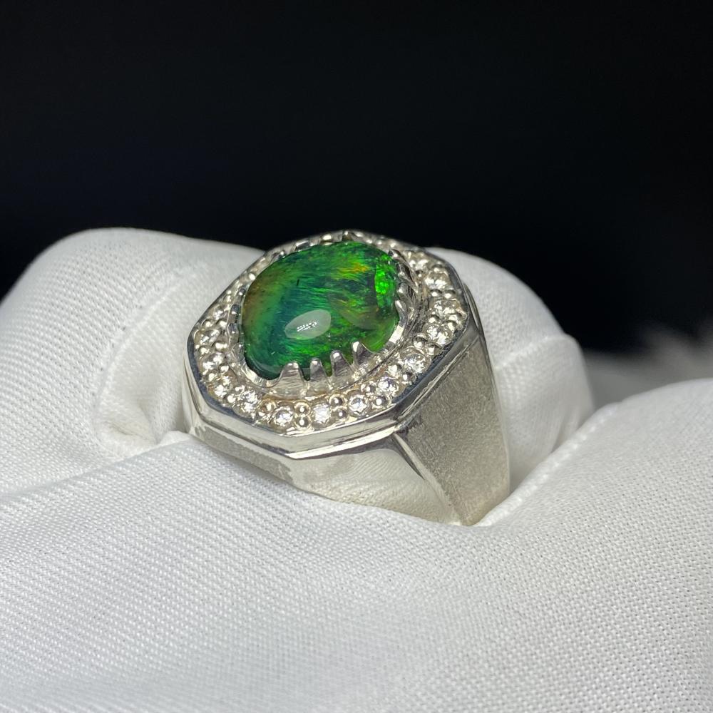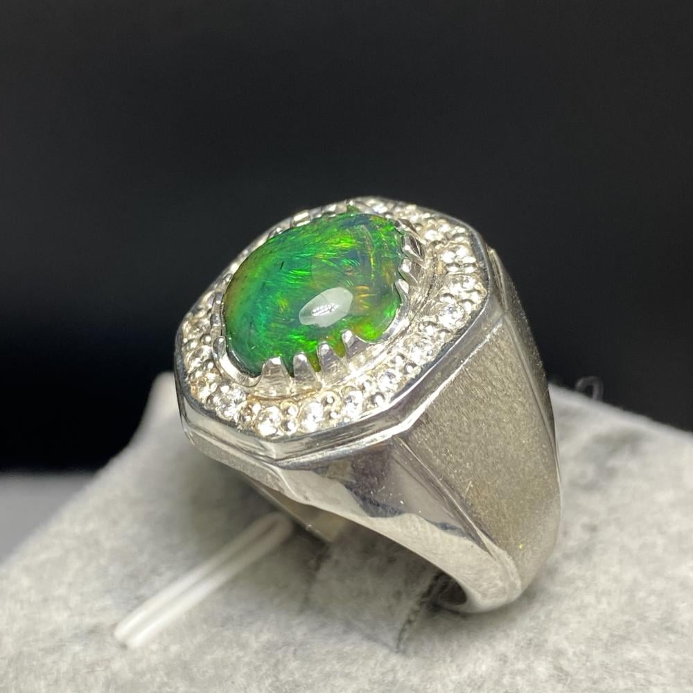 خاتم فضة بحجر أوبال اثيوبي فل فير صياغة موديل اسطنبولي مرصع زركون صياغة ورشة الرفاعي